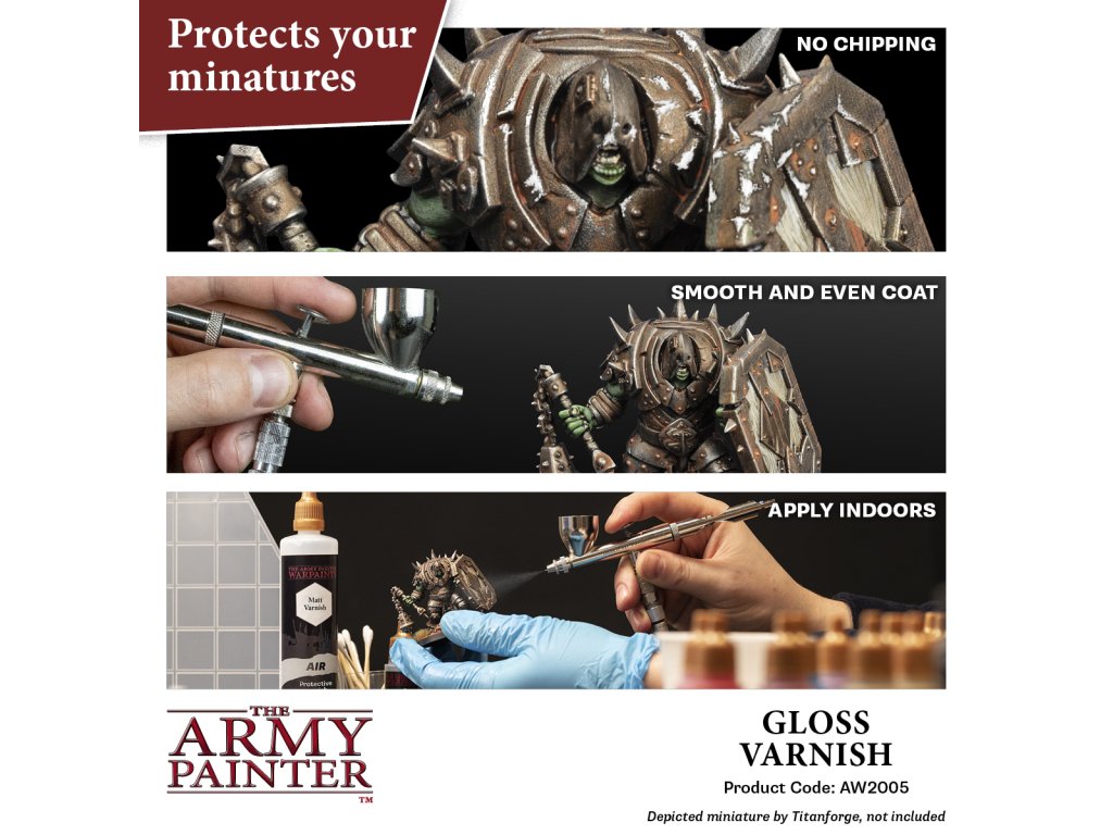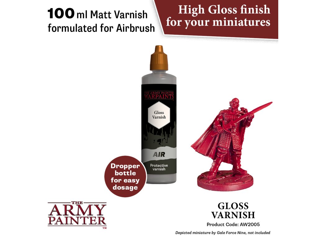 Warpaints Air: Gloss Varnish 100 ml je lesklý lak pro ochranu vašich figurek a miniatur od společnosti Army Painter.