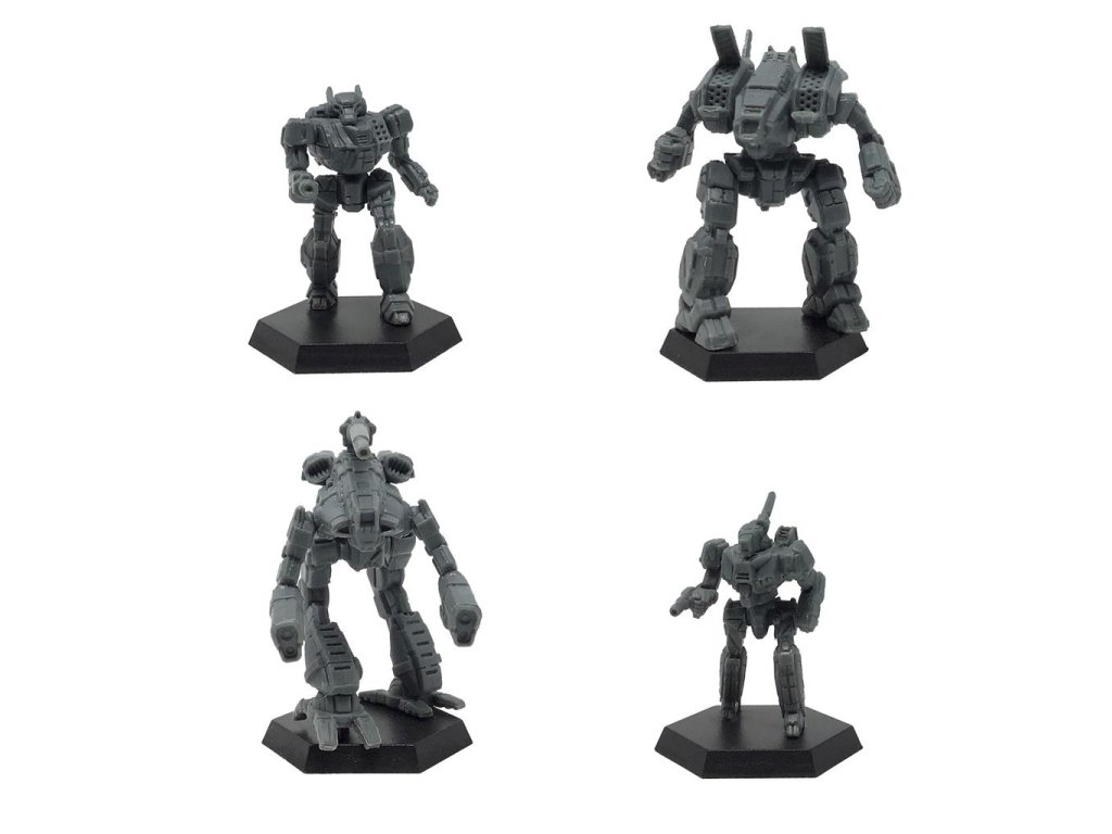 - Obsah balení: 4 plně sestavené, nevybarvené plastové miniatury BattleMechů