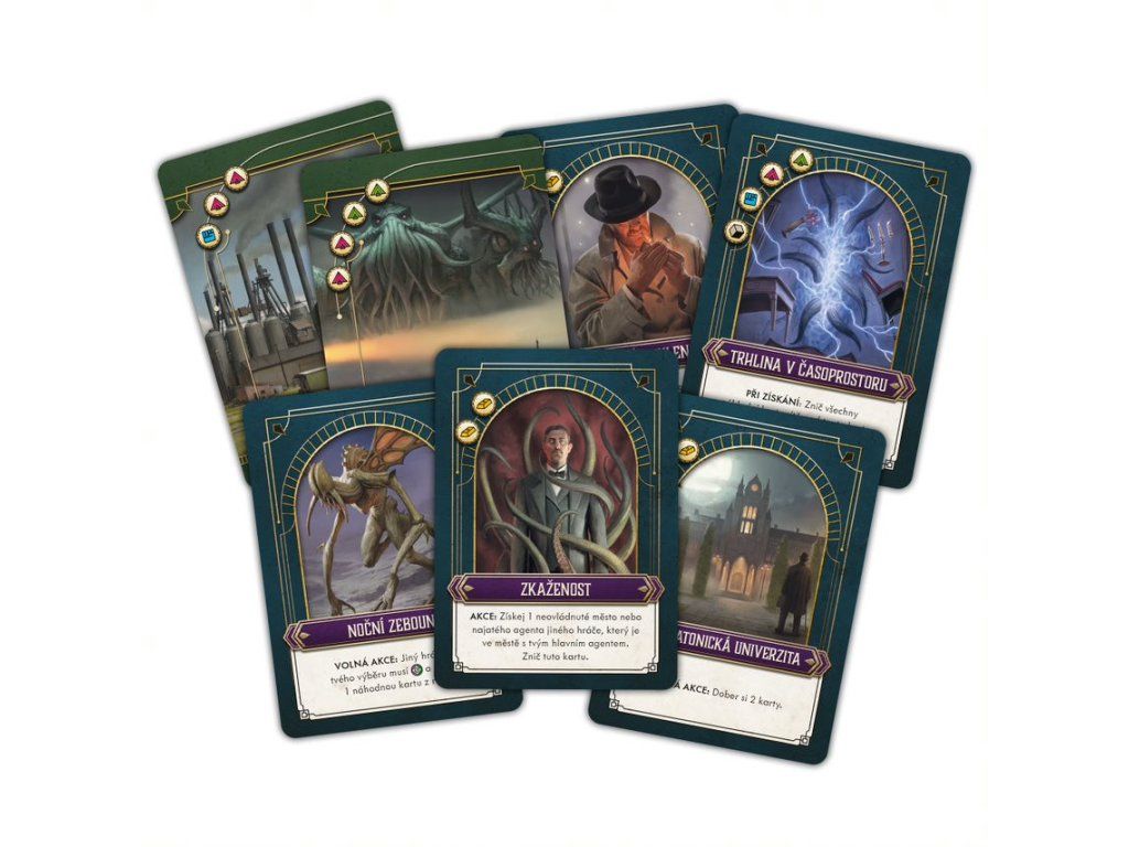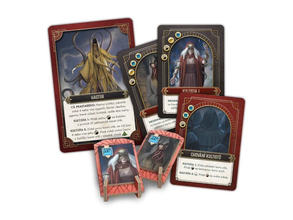 - Komponenty pro sólový režim (karty prastarých, kultistů a žetony)