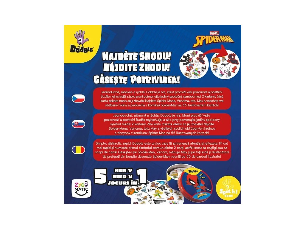 Nehledejte dál – našli jste perfektní dárek pro fanouška Spider-Mana nebo skvělé rozšíření vaší herní sbírky. Dobble Spider-Man nabízí nekonečnou zábavu v kompaktním balení za skvělou cenu. Klikněte na tlačítko "Přidat do košíku" a už brzy budete moci vyzkoušet, kdo má v rodině nejlepší postřeh!