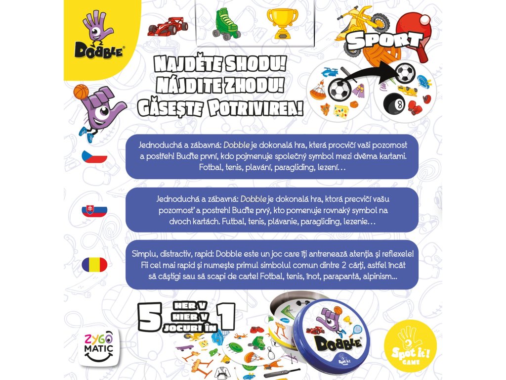 Sportovní tematika dělá z Dobble Sport ideální volbu pro všechny, kdo milují aktivní životní styl. Symboly na kartách zahrnují desítky různých sportovních disciplín, což hru dělá nejen zábavnou, ale i vzdělávací. Děti se při hraní naučí rozpoznávat různé sporty a jejich názvy, zatímco dospělí si užijí napínavou soutěž o nejrychlejší postřeh.