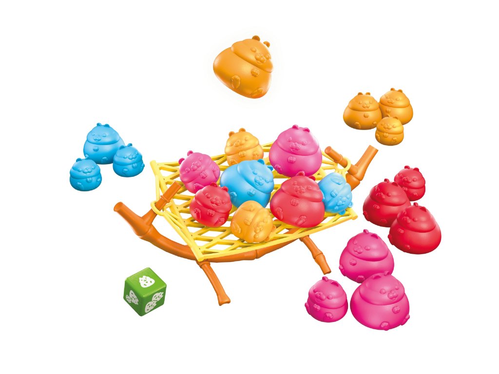 Herní princip je geniálně jednoduchý, a přesto neuvěřitelně zábavný. Ve svém tahu hodíte kostkou, která vám určí, kterého křečka nebo kolik křečků musíte umístit na houpací síť. Vaším cílem je zbavit se všech svých křečků – buď je úspěšně umístíte do sítě, nebo je odložíte do krabice. Zní to jednoduše? Zkuste to! Balanční mechanismus reaguje na sebemenší změnu váhy a každý váš tah může znamenat vítězství, nebo naopak pád všech křečků.
