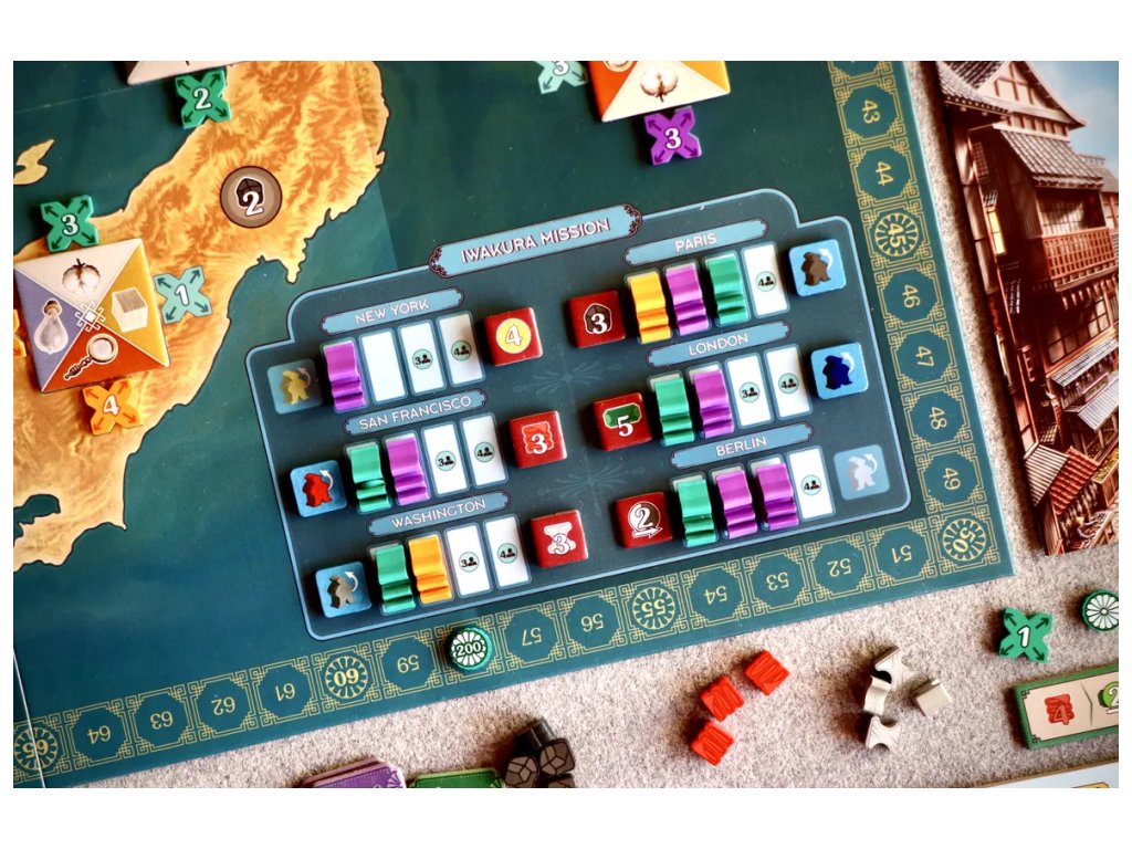 Když otevřete krabici, okamžitě poznáte, že tohle není běžná produkce. Nádherně ilustrovaný herní plán, detailní figurky lodí, strojů a vlaků, kvalitní dlaždice továren a desítky dalších komponentů — to všechno vytváří atmosféru, která vás přenese přímo do Japonska éry Meidži.
