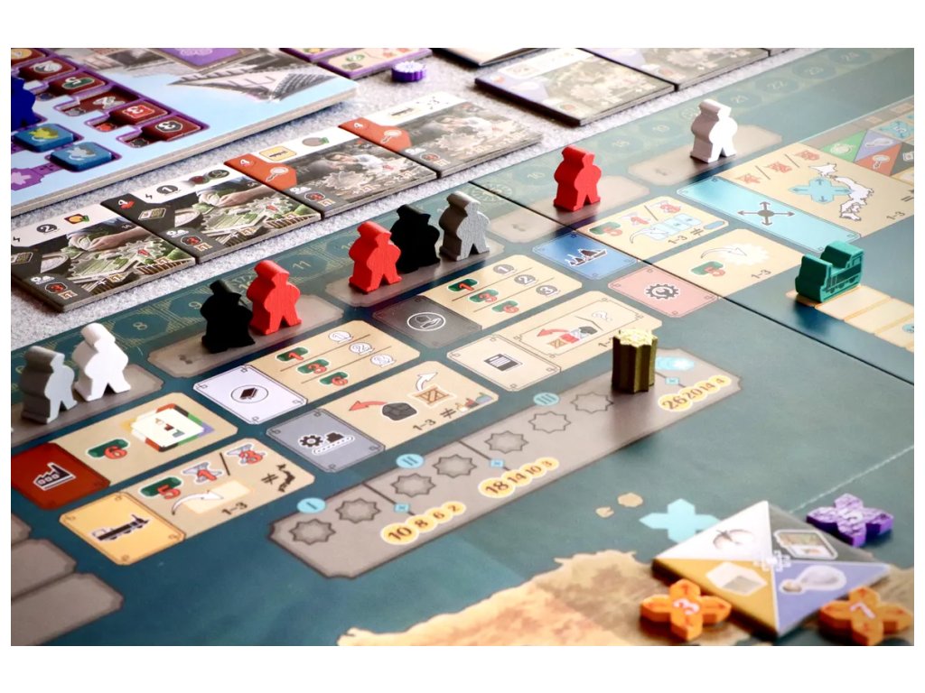 A jak taková partie vypadá v praxi? Ve skutečnosti je to jednodušší na pochopení, než byste možná čekali, ale hloubka rozhodování vás bude překvapovat i po desáté partii. Najímáte dělníky, stavíte továrny v různých regionech, produkujete suroviny a zboží, a pak je expedujete na domácí trhy nebo na zahraniční kontrakty. Každý tah je miniaturní puzzle, kde zvažujete desítky možností.