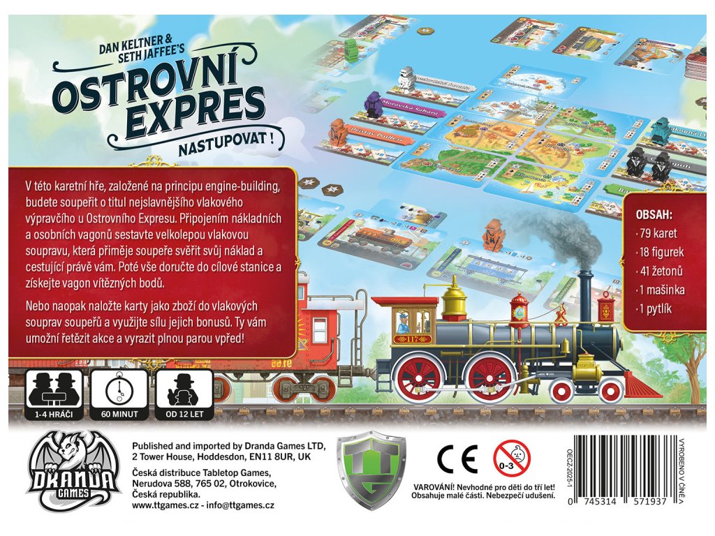 Ostrovní expres je vláčková karetní hra pro 1–4 hráče od 12 let, ve které karty využíváte hned několika různými způsoby. Každý hráč se snaží stát nejslavnějším vlakovým průvodčím na ostrově a vybudovat tu nejefektivnější a nejpůsobivější vlakovou soupravu.