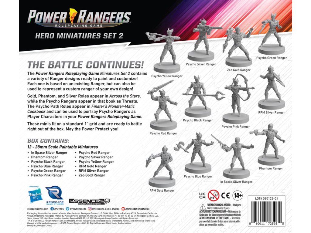Boj pokračuje s Power Rangers RPG Hero Miniatures Set 2! Tato sada přináší rozmanité nenabarvené miniatury ikonických Power Rangers, připravené k nabarvení a úpravě, aby reprezentovaly vaše postavy na bojišti. Ať už chcete znovu prožít epické bojové scény nebo si vytvořit vlastní Ranger personu, tyto miniatury jsou perfektním doplňkem k vašemu Power Rangers RPG.