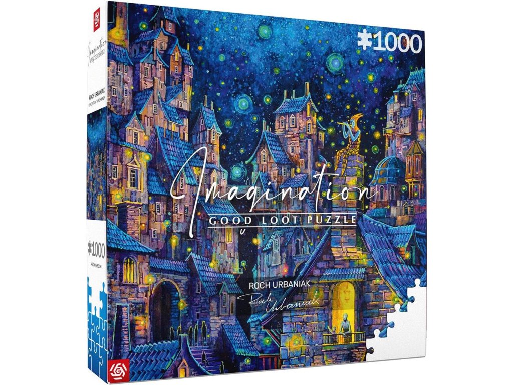 Objevte kouzlo umění s puzzle Concert on the Chimney od polského ilustrátora Roch Urbaniak. Tento 1000dílný puzzle motiv z edice Puzzle Imagination přenáší jeho jedinečný obraz do podoby detailní skládačky, která vás vtáhne do tajemné noční atmosféry města.
