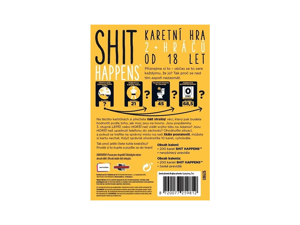 Přiznejme si to - občas se to sere každýmu, že jo? Tak proč se nad tím aspoň nezasmát. Shit Happens je karetní hra pro všechny fanoušky nekorektního humoru.