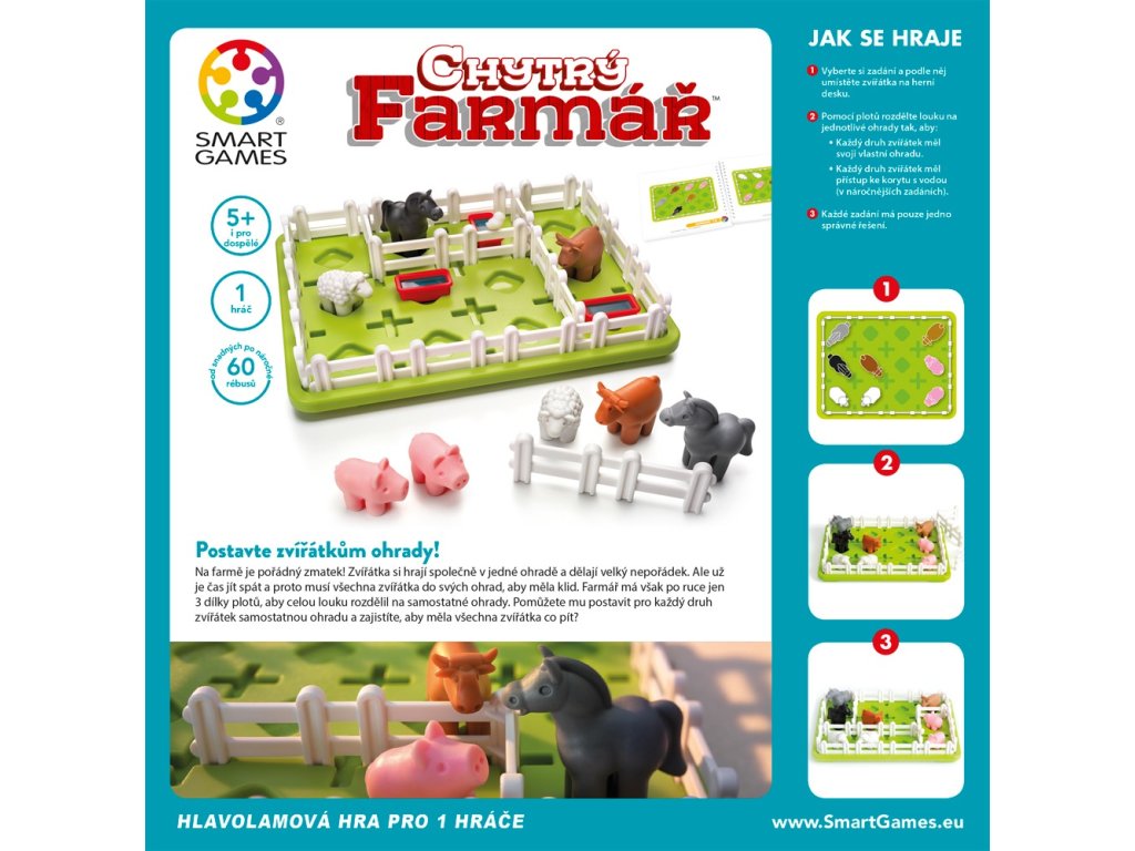 Nečekejte a pořiďte svému dítěti Chytrého farmáře ještě dnes. Stačí kliknout na tlačítko „Přidat do košíku" a během pár dní budete mít doma hru, která zabaví na dlouhé hodiny. A až uvidíte, jak se váš malý farmář soustředěně kouše do rtu při řešení hlavolamu, budete vědět, že jste udělali správnou volbu.