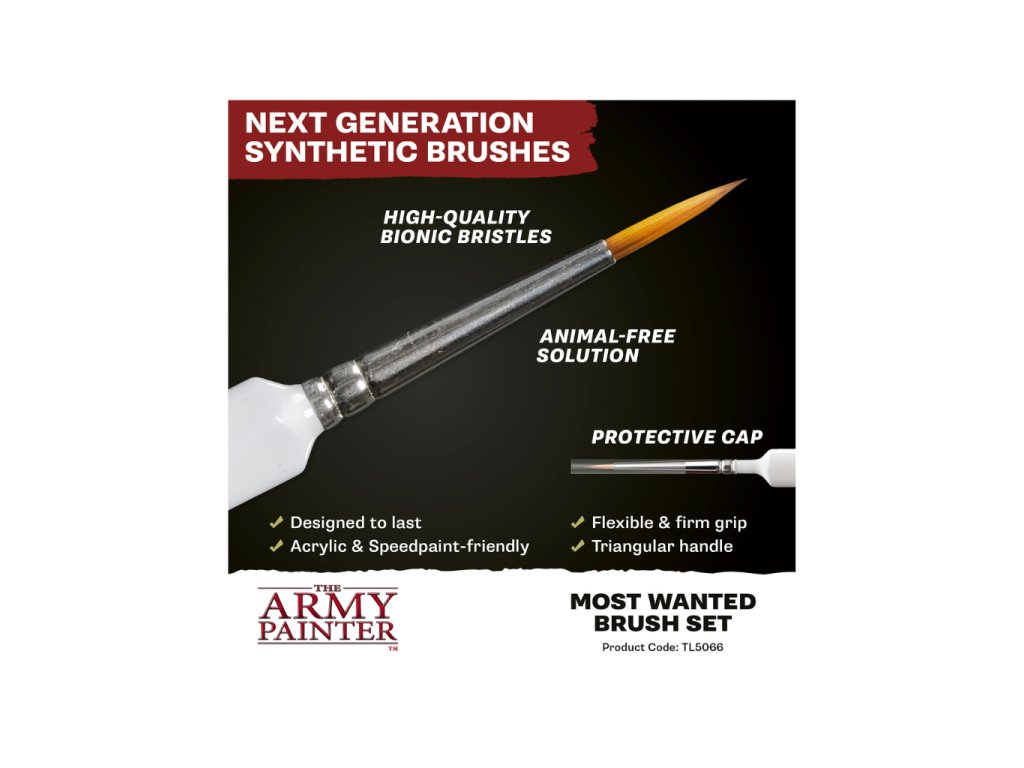 Wargamer Most Wanted Brush Set není náhodný výběr. Jedná se o pečlivě sestavený soubor nejoblíbenějších štětců pro wargaming, který vychází z reálných zkušeností a preferencí malířů. Dostáváte tedy přesně ty nástroje, které se v praxi osvědčily nejlépe. Každý štětec v setu má své specifické využití a společně pokrývají prakticky všechny techniky, které při malování miniatur použijete.