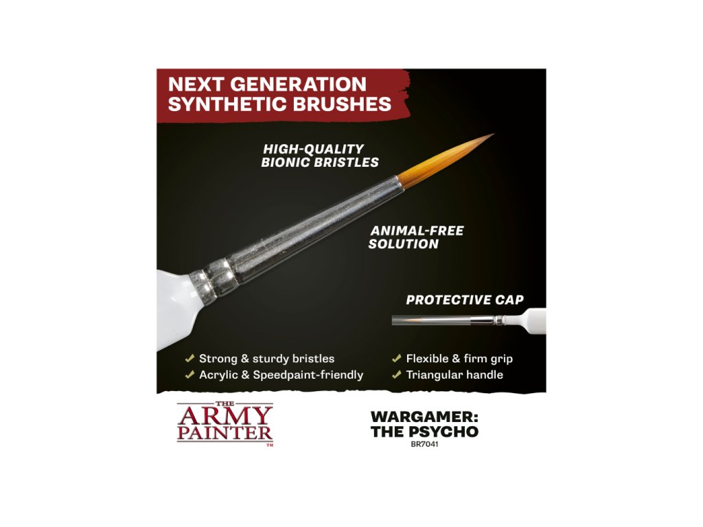 Když malujete miniaturní figurky a potřebujete nanést barvu na opravdu malinkaté detaily, běžný štětec na figurky prostě nestačí. Přesně pro tyto chvíle vznikl Wargamer The Psycho Brush od renomované značky The Army Painter. Tento precizní štětec je první svého druhu, který byl vyvinut výhradně pro potřeby wargamingu a malování miniatur. Jeho název není náhodný - Psycho skutečně představuje novou úroveň preciznosti, kterou jste dosud možná považovali za nedosažitelnou.